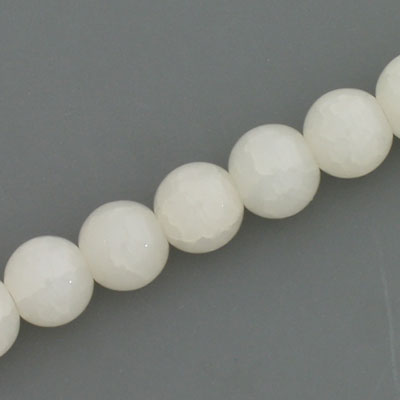 10 MM ROUND GLASS BEADS WHITE WITH WHITE CRACKLE FINISH - 74 PCS