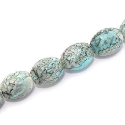 16 X 12 MM OVAL GLASS BEADS LIGHT AQUA / GREY - 50 PCS