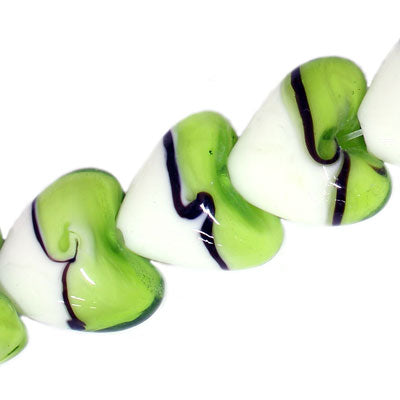 20 MM GLASS HEART BEADS - GREEN / WHITE - 20 PCS