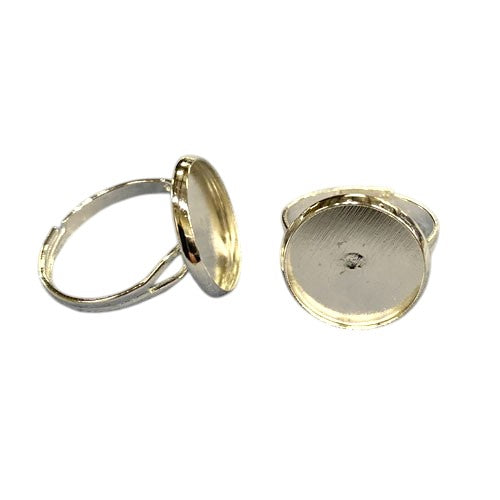 ADJUSTABLE BEZEL RING SILVER TRAY 14MM - 10 PCS